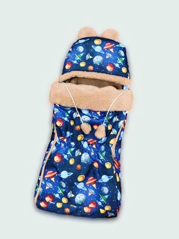 Конверт детский меховой на выписку "Космос" 100*46 (до 1 года)