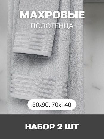 Набор Полотенец махровых PandaHug Cozy Stripe светло-серое с бордюром 140х70, 90х50