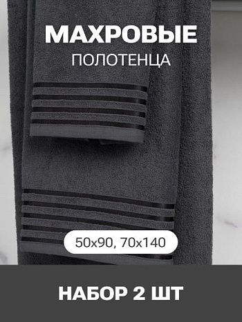 Набор Полотенец махровых PandaHug Cozy Stripe темно-серое с бордюром 140х70, 90х50