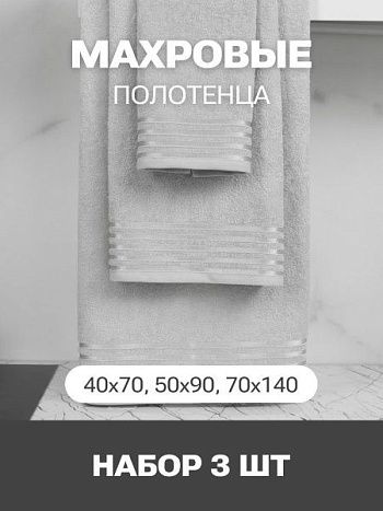 Набор Полотенец махровых PandaHug Cozy Stripe светло-серое 140х70, 90х50, 40x70 пл. 400 гр м2