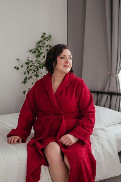 Халат махровый женский с капюшоном бордовый 60-62, 64-66
