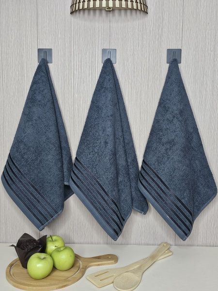 Набор махровых полотенец 3 шт (40*70) синий, полоса