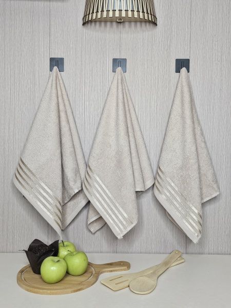 Набор махровых полотенец 3 шт (40*70) бежевый, полоса