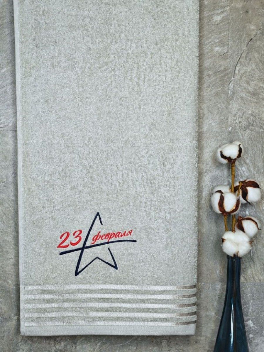 Полотенце с вышивкой 70*140 "23 февраля" светло-серое POL/23февраля_св.серый