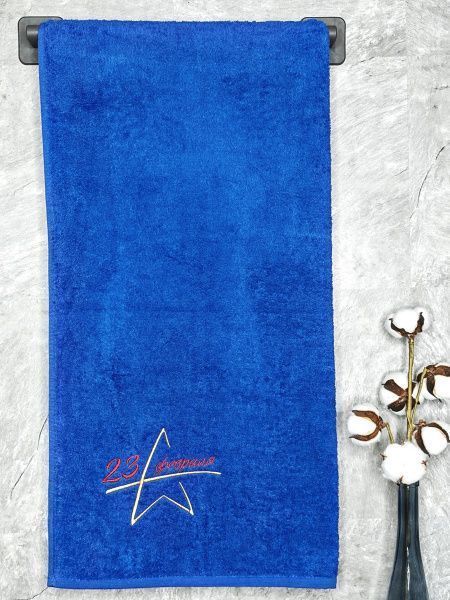 Полотенце с вышивкой 70*140 "23 февраля" васильковый