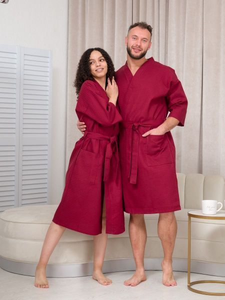 Вафельный халат также активно используется в гостиницах, в фитнес-центрах, салонах красоты, SPA. Это гигиенично, практично и выгодно: для стирки требуется меньше воды, чем для махровых, они быстрее сушатся, а ткань долго не изнашивается.