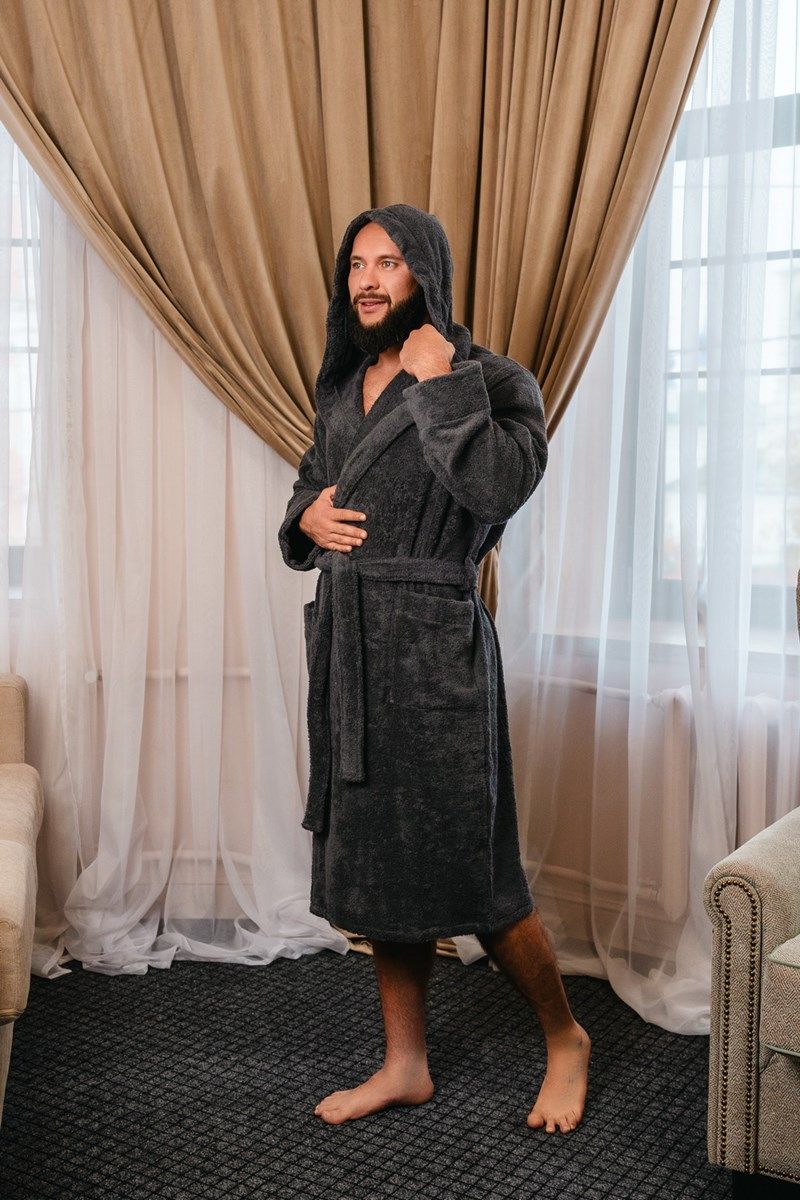 Халат махровый с капюшоном темно-серый