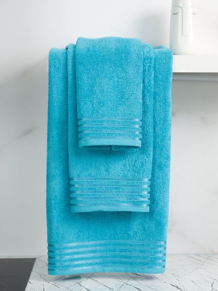 Махровое полотенце для душа синего цвета с отделкой в виде атласных полос. Оно приятно не только внешне, но и на ощупь: мягкое, теплое, комфортное. Плотно расположенные петельки махры быстро высушат и согреют кожу после водных процедур. А благодаря универсальному цвету и размеру такое махровое полотенце подойдет всей семье. Полотно изготовлено в Узбекистане , который издавна славится производством махровых изделий высочайшего качества. В составе ткани 100% хлопок, что гарантирует высокую впитываемость, экологичность и гипоаллергенность изделия. Полотенце обладает высокой износостойкостью и не требует особого ухода. При соблюдении условий стирки оно не деформируется и не теряет цвет, сохраняя свой первоначальный вид долгие годы.