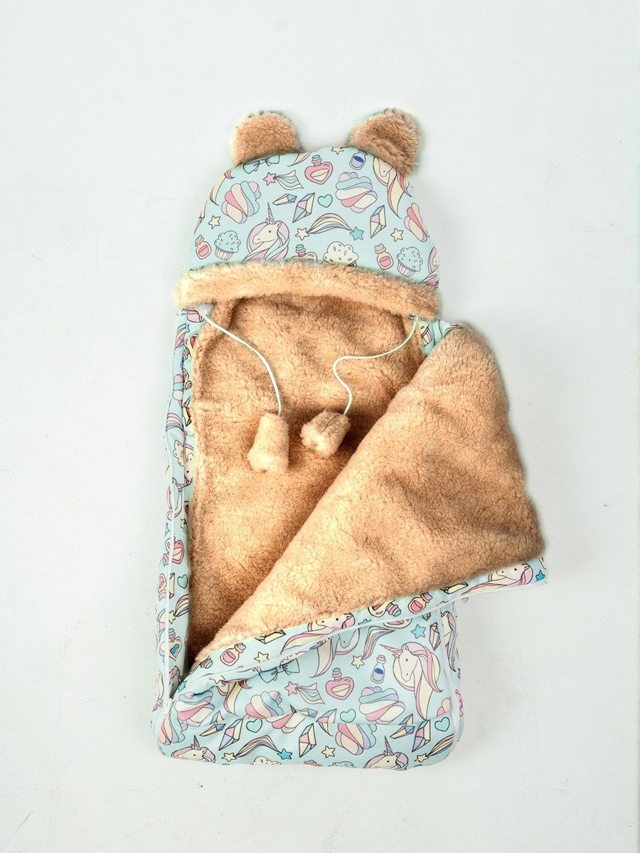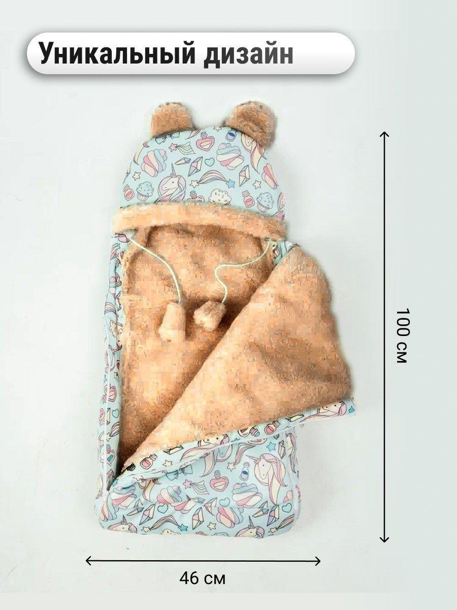 Конверт детский меховой на выписку "Единороги" 82*42 (до 6 мес), 100*46 (до 1 года)