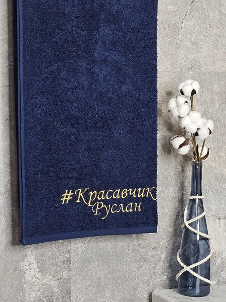 Полотенце с вышивкой 70*140 "красавчик" Руслан темно-синее